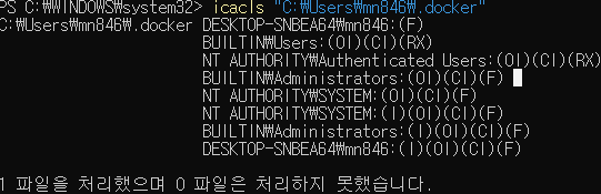 icacls "도커 폴더 경로" /grant 사용자명:F /t