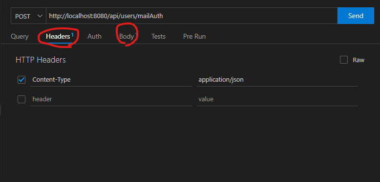 Body 부분에는 이렇게 넣어줬어야 했는데 멍청하게 Query 부분에 저 위에 코드 둘다 몰아서 적어준것.. 배워야할게 참 많다