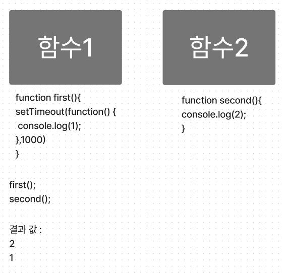 자바스크립트는 이벤트 기반 언어이기 때문에 다음 명령을 실행하기 전에 다른 이벤트를 계속해서 실행시킨다