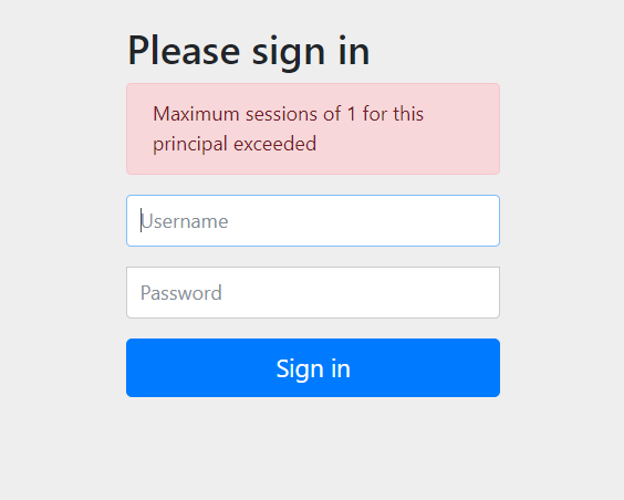 .maxSessionsPreventsLogin(true) //동시 로그인 차단, false인 경우 기존 세션 만료(default)